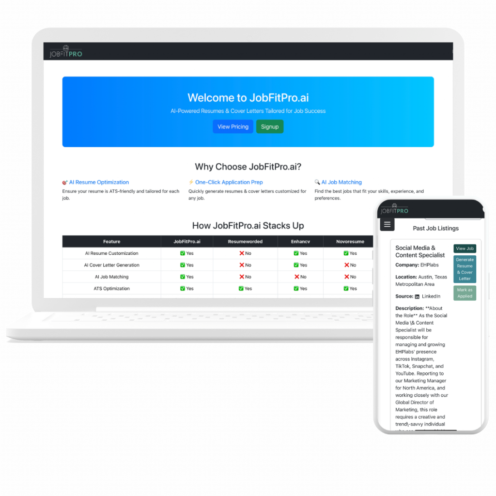 Just sign up free, upload your resume, and let JobFitPro handle the rest. It’s that easy!